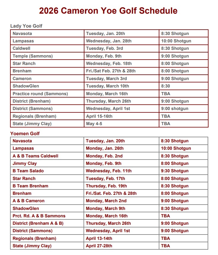 Click HERE for printable Schedule